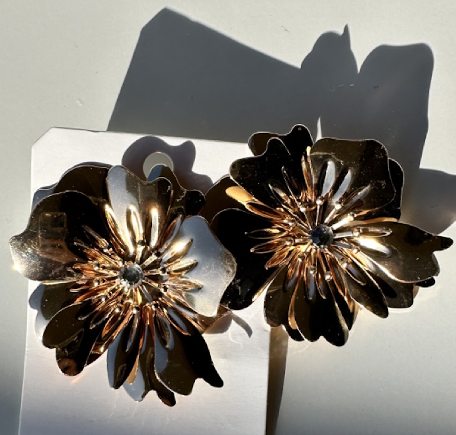 Aretes dorados de 5×5 cm. ideales para fiestas y ocasiones especiales.